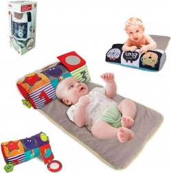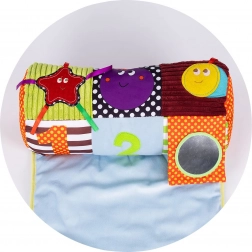 Kontrastní barvy, textury a drobné hračky podporují rozvoj zraku, hmatu a koordinace. Díky nízké hmotnosti je set ideální na doma i na cesty – vždy připravený k bezpečné hře a relaxaci.