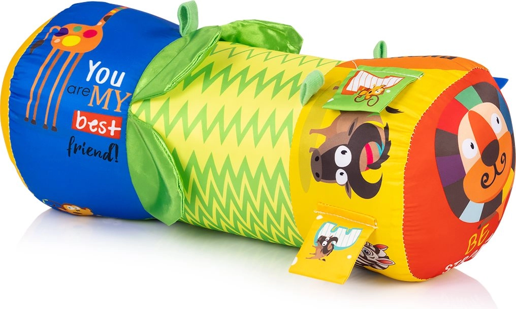 Podpořte přirozený rozvoj vašeho miminka s polštářem CHIPOLINO pro cvičení na bříšku. Tento měkký a lehký válec pomáhá posilovat zádové, krční a pažní svaly, nabízí smyslovou stimulaci díky barevným vzorům a hračkám a je snadno přenosný pro zábavu kdekoli.