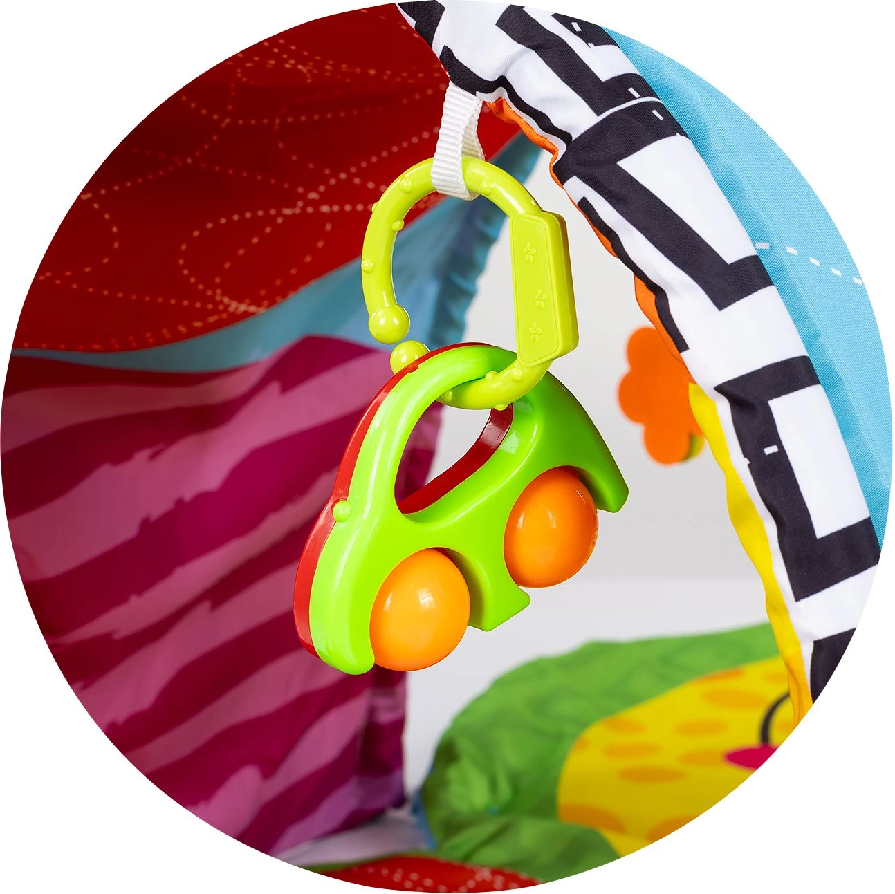 Promyšlené detaily napomáhají rozvoji koordinace ruka–oko, jemné i hrubé motoriky a vnímání barev a tvarů. Deka poskytuje jistotu a pohodlí při každé hře a snadno se začlení do dětského pokojíčku.