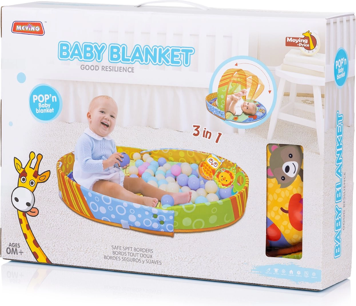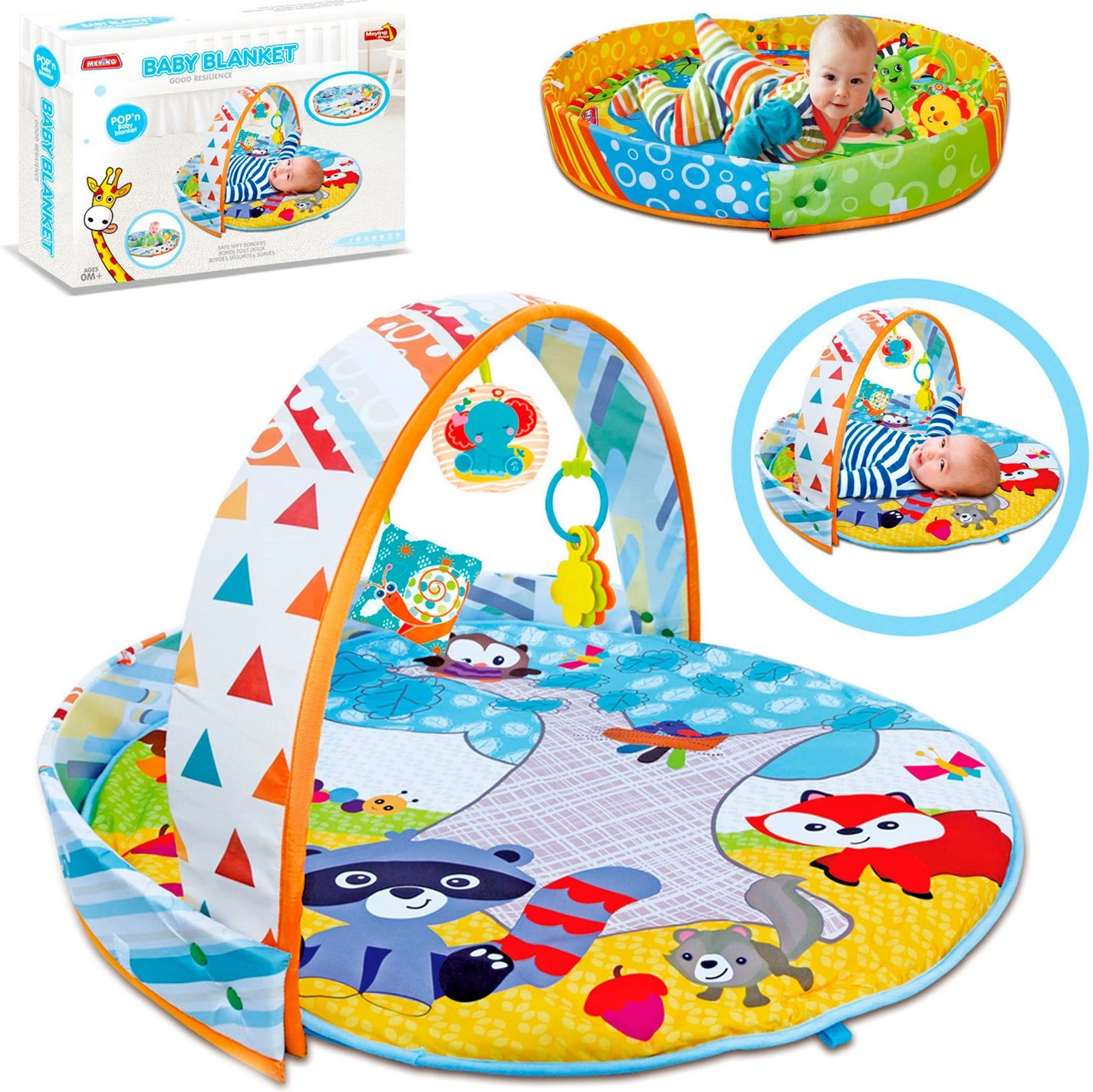 Součástí jsou měkké plyšové polštářky, kousátko, chrastítka a šusticí prvky, které stimulují sluch, zrak i hmat. Deka je skvělá pro tummy time (hraní na bříšku) i klidné pozorování vleže na zádech. Díky snadnému složení ji snadno přenesete nebo uložíte.