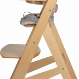 Odnímatelný pultík a dřevěná bezpečnostní zábrana umožní snadný přechod od vysoké židličky k židličce ke stolu. Integrovaný 3bodový pás a pohodlné polstrování zvyšují bezpečnost a komfort i při delším sezení.