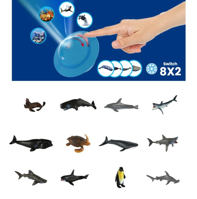 Součástí balení jsou i malé figurky mořských zvířat, které mohou děti porovnávat s promítanými obrázky, osahat si je a lépe se naučit rozpoznávat tvary a barvy. Díky jednoduchému ovládání se projektor hodí i pro nejmenší ručičky.