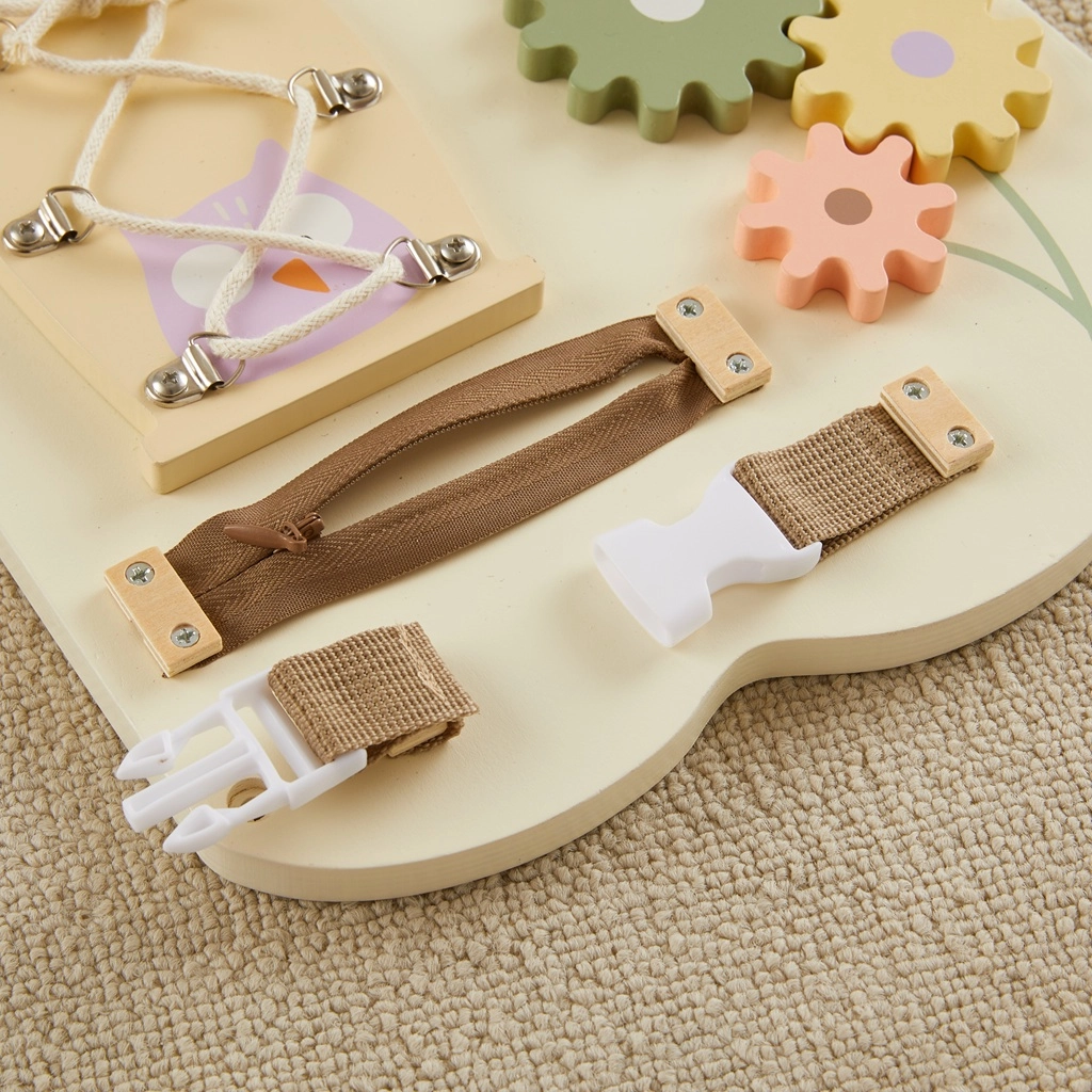 Velká nástěnná motorická deska ve tvaru sovy od 2Kids Toys přináší dětem přes 10 různorodých aktivit v jemných pastelových barvách. Podporuje jemnou motoriku, logické myšlení, smyslové vnímání a koordinaci ruka–oko. Díky kvalitnímu zpracování z dřeva, plastu a kovu je bezpečná, odolná a skvěle se hodí do dětského pokoje i herny.