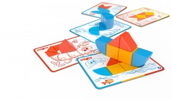 - Šablony 1:1: děti přikládají kostky přímo na obrázek a učí se sledovat tvar i barvu.