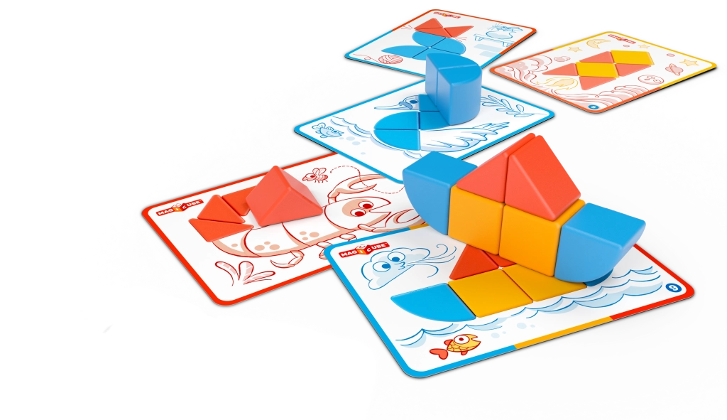 GEOMAG MAGICUBE Blocks & Cards je zábavná a vzdělávací magnetická stavebnice, která roste s vaším dítětem. Pevné magnetické kostky se snadno spojují ze všech stran a díky kartičkám s předlohami v reálné velikosti 1:1 děti rychle pochopí principy skládání a prostorové představivosti. Sada kombinuje volnou hru s vedenou aktivitou, takže podporuje samostatnost i soustředění.