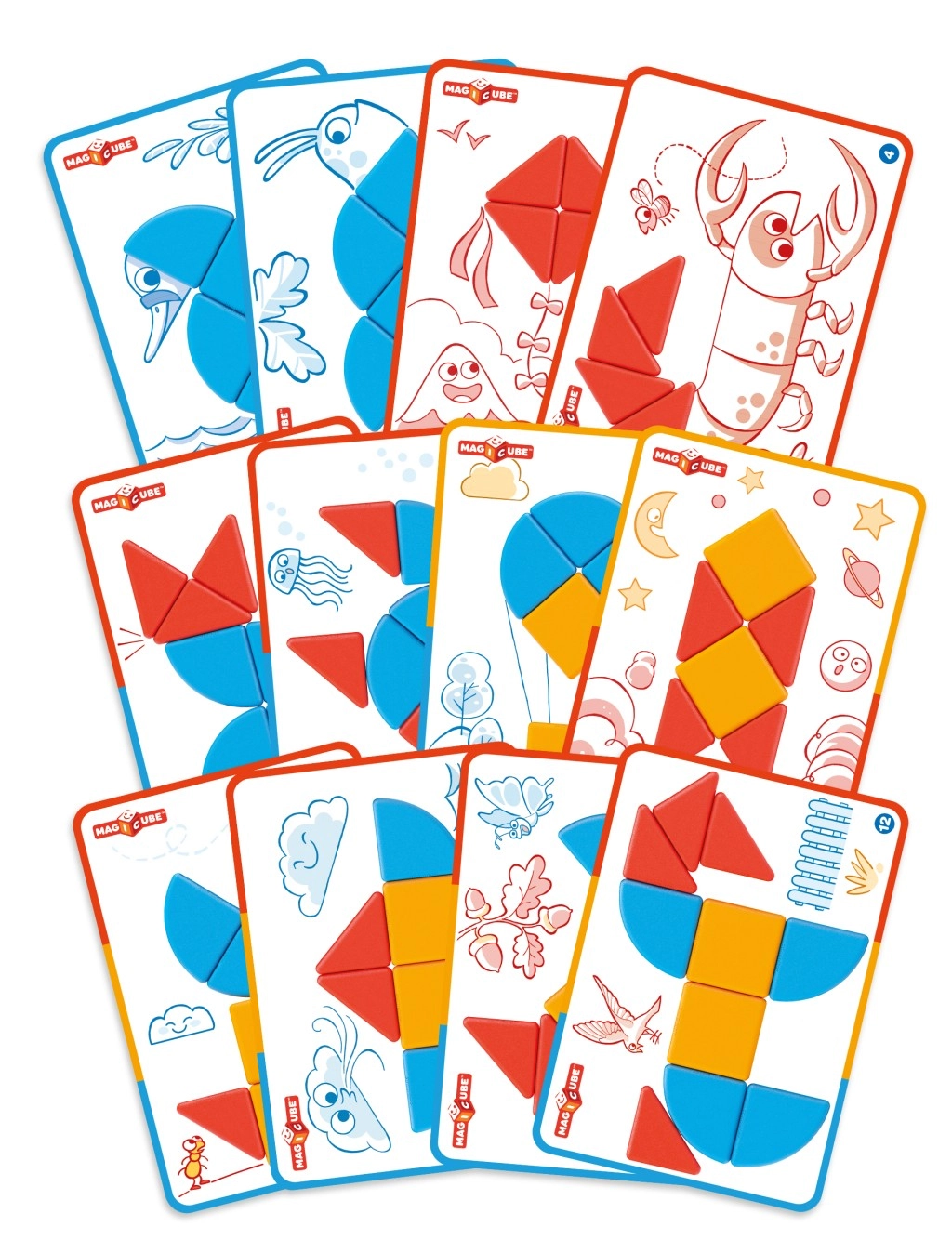 Objevte hravou magnetickou stavebnici GEOMAG MAGICUBE pro nejmenší s celkem 16 dílky. 10 magnetických prvků a 6 oboustranných kartiček s 12 návody pomáhají dětem snadno skládat obrázky od jednoduchých po složitější. Šablony jsou v měřítku 1:1 pro pohodlné přikládání. Vyrobeno ze 100% recyklovaného plastu, vhodné pro děti od 2 let a skvěle rozvíjí fantazii a tvořivost.