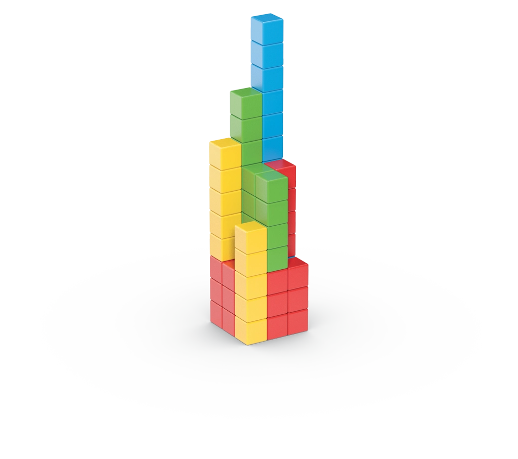 - 64 dílků ve 4 barvách – bohaté možnosti kombinací.