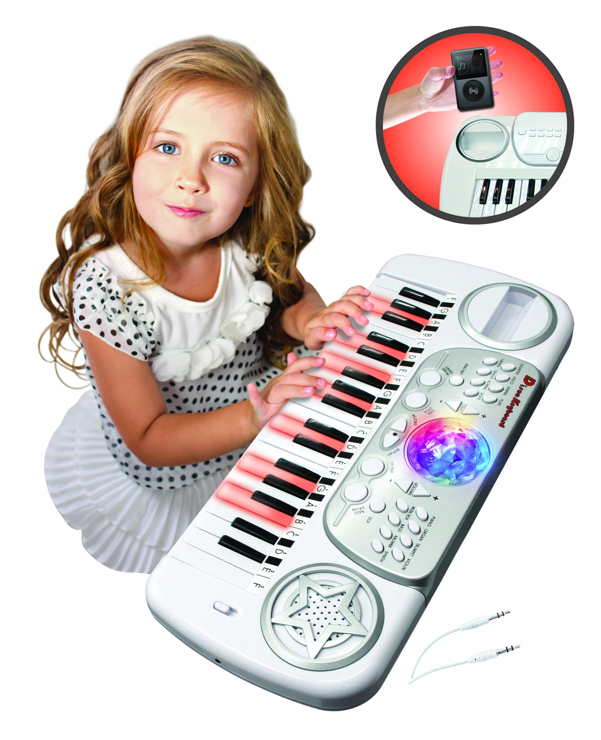 Díky 37 klávesám, 8 vestavěným nástrojům a 8 rytmům si děti vyzkouší různé zvuky a styly. Nastavení tempa a hlasitosti podpoří kreativitu, funkce nahrávání s následným přehráním umožní poslouchat vlastní výtvory. Připojením mobilu nebo MP3 přehrávače přes konektor mohou přehrávat oblíbené písničky a hrát do nich.