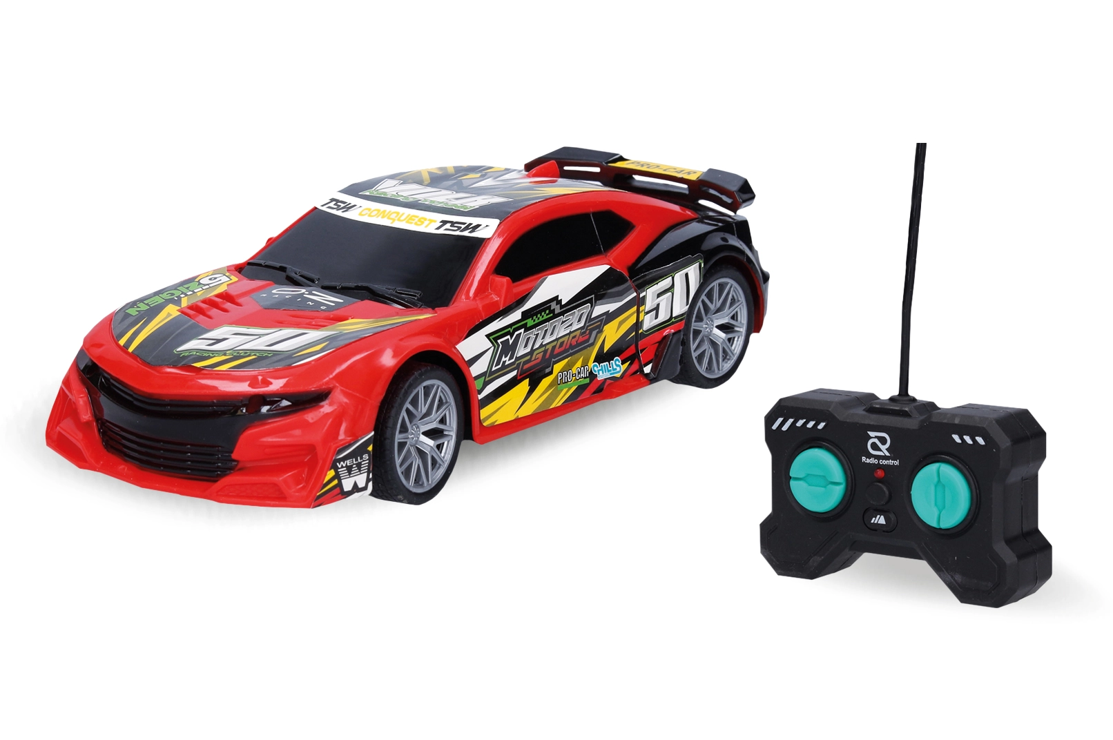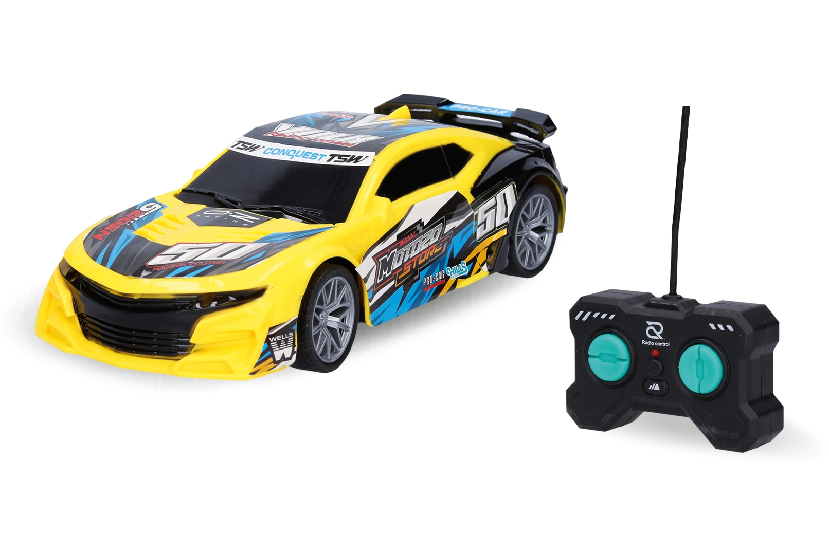 Model je připraven k akci během chvilky – stačí vložit baterie. Praktický přepínač ON/OFF je umístěn na spodní straně a pomáhá šetřit energii. Vyberte si z 2 atraktivních barev (žlutá nebo červená) a vyrazte za zábavou.