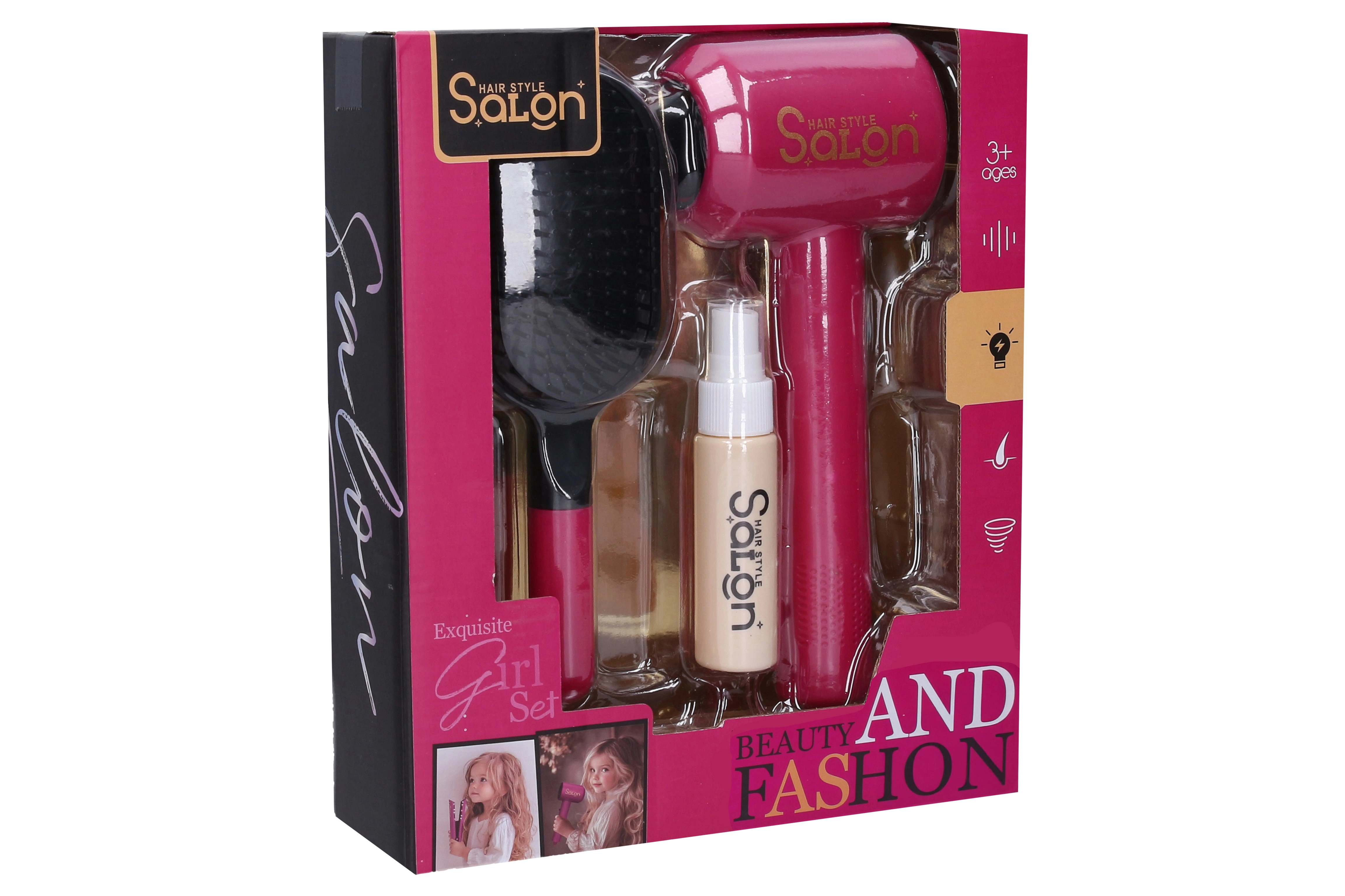 Tento roztomilý kosmetický set je skvělou volbou pro děti, které milují hru na kadeřnici. Funkční fén na baterie dodá zážitku na opravdovosti, zatímco kartáč a sprej umožní pečovat o vlásky panenek i kamarádek. Díky kompaktní velikosti 21 cm se set pohodlně drží a snadno přenáší.