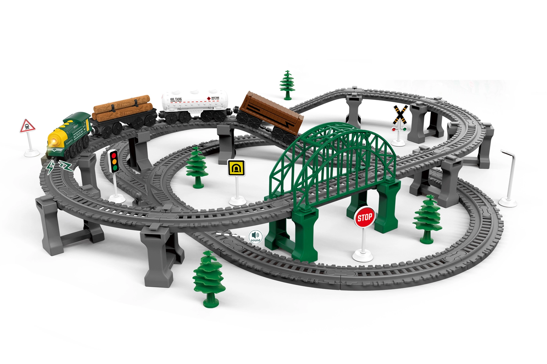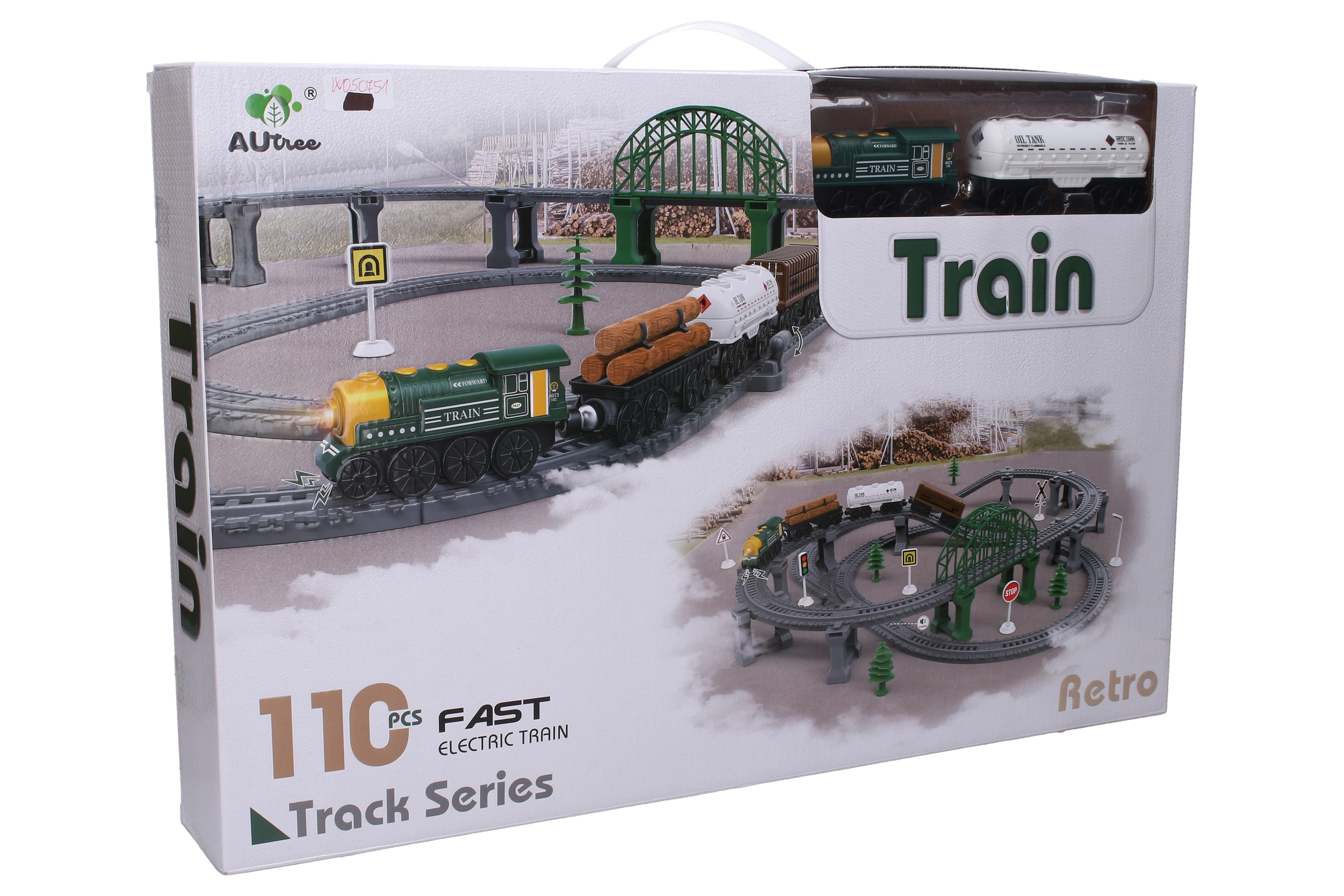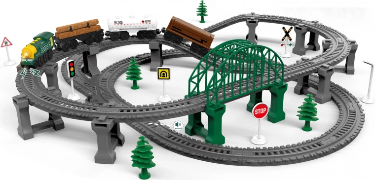 Vlaková trať se zvukovými efekty 77 × 76 × 16 cm, 110 dílků