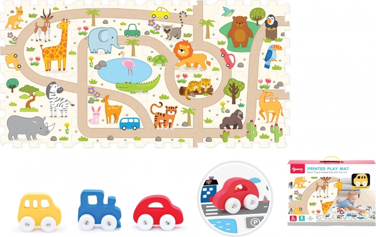Objevte zábavné a bezpečné hraní s touto sadou měkkých bloků a safari autíčkem. Sada obsahuje 8 měkkých bloků o rozměru 31,5 × 31,5 × 1 cm a autíčko s volně běžícími koly, které podporuje kreativitu, motoriku a bezpečnou hru doma i ve školce.