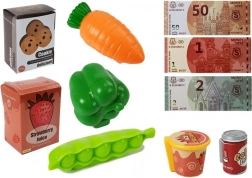Součástí je nákupní košík a sada potravin, díky nimž se děti snadno vžijí do role prodavače i zákazníka a rozvíjejí sociální dovednosti.