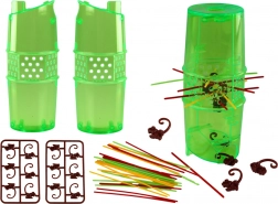 Postavte věž, prostrčte barevné tyčinky a zavěste na ně roztomilé opičky. Hráči střídavě vytahují tyčinky a snaží se, aby spadlo co nejméně opiček. Jednoduchá pravidla, rychlé kolo a velká porce smíchu – ideální na rodinné večery i dětské oslavy.