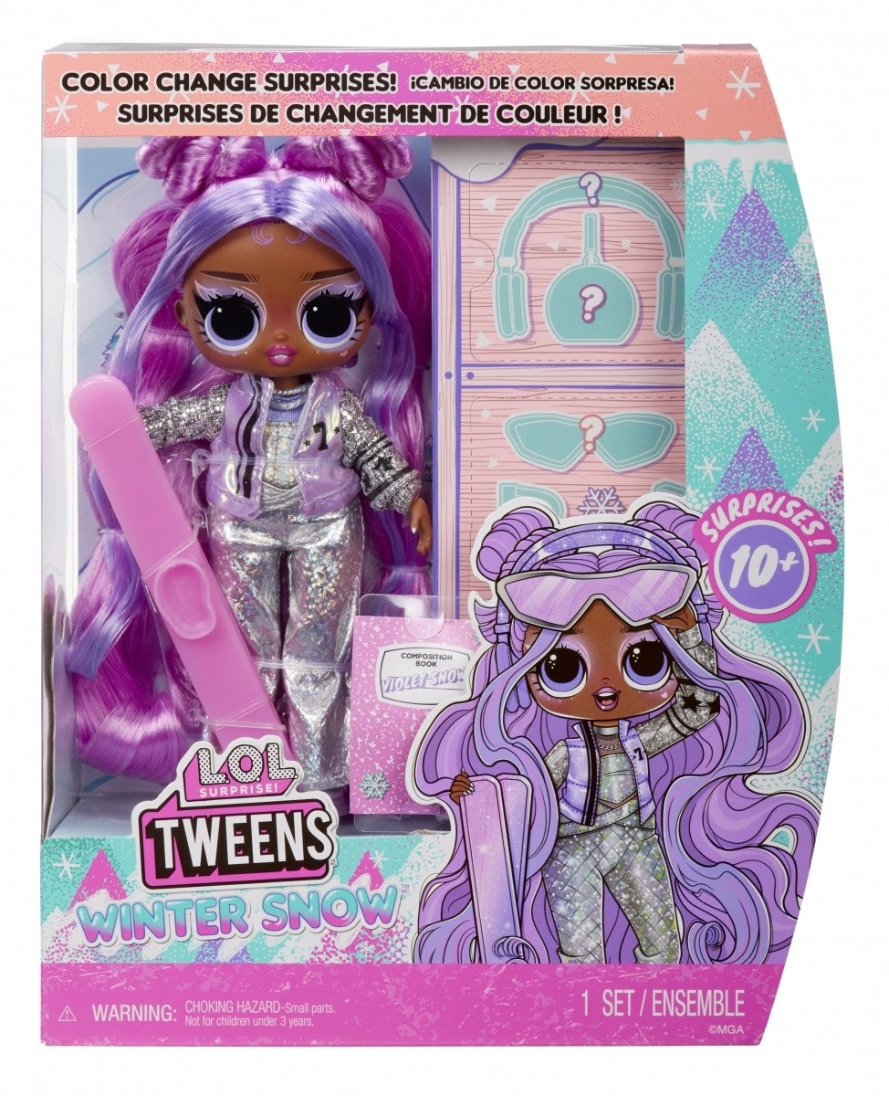 Připrav se na zimní dobrodružství s panenkou L.O.L. Surprise! Tweens Violet Snow. Stylové outfity, detailní doplňky a možnost pózování dělají z každé hry jedinečný zážitek. Děti si zamilují barevně sladěné lyžařské brýle, sluchátka s otočnými náušníky i módní kabelku.