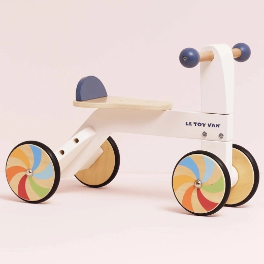 Dřevěné odrážedlo LE TOY VAN s duhovými kolečky z FSC® dřeva. Bezpečné barvy, pohodlné sedátko a snadné řízení. Ideální pro děti 1,5+.