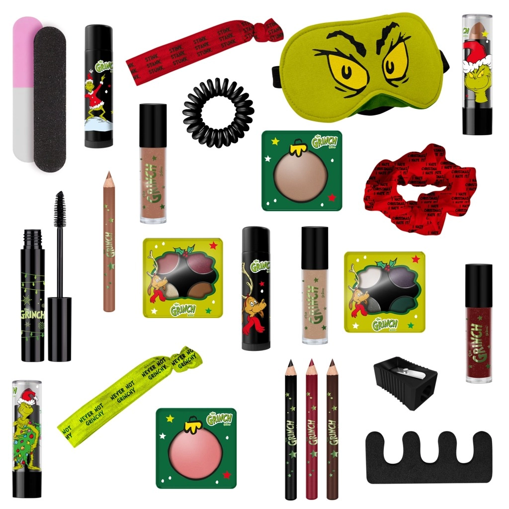 Tento hravý adventní kalendář inspirovaný postavičkou GRINCH ukrývá 24 okének plných kosmetiky a doplňků. Vytvářejte každý den jiné líčení – od přirozeného po výrazné sváteční looky. Díky pestrému výběru produktů zvládnete obočí, oči, rty i nehty a doplníte je praktickými pomocníky pro každodenní péči.