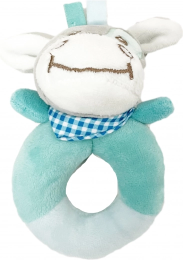 Toto hebké chrastítko pro nejmenší kombinuje roztomilý design oslíka s funkčním kroužkem pro snadné držení. Díky příjemnému plyši a jemnému chřestění pomáhá rozvíjet sluch, hmat i motoriku dítěte. Lehká konstrukce je vhodná pro první pokusy o uchopení a třesení.