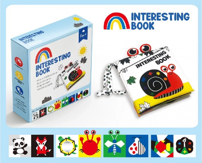 Knížka je vyrobena z bezpečných materiálů vhodných pro nejmenší a zároveň je snadná na údržbu. Pomáhá dětem učit se barvy a tvary, rozvíjí soustředění a koordinaci oko–ruka.