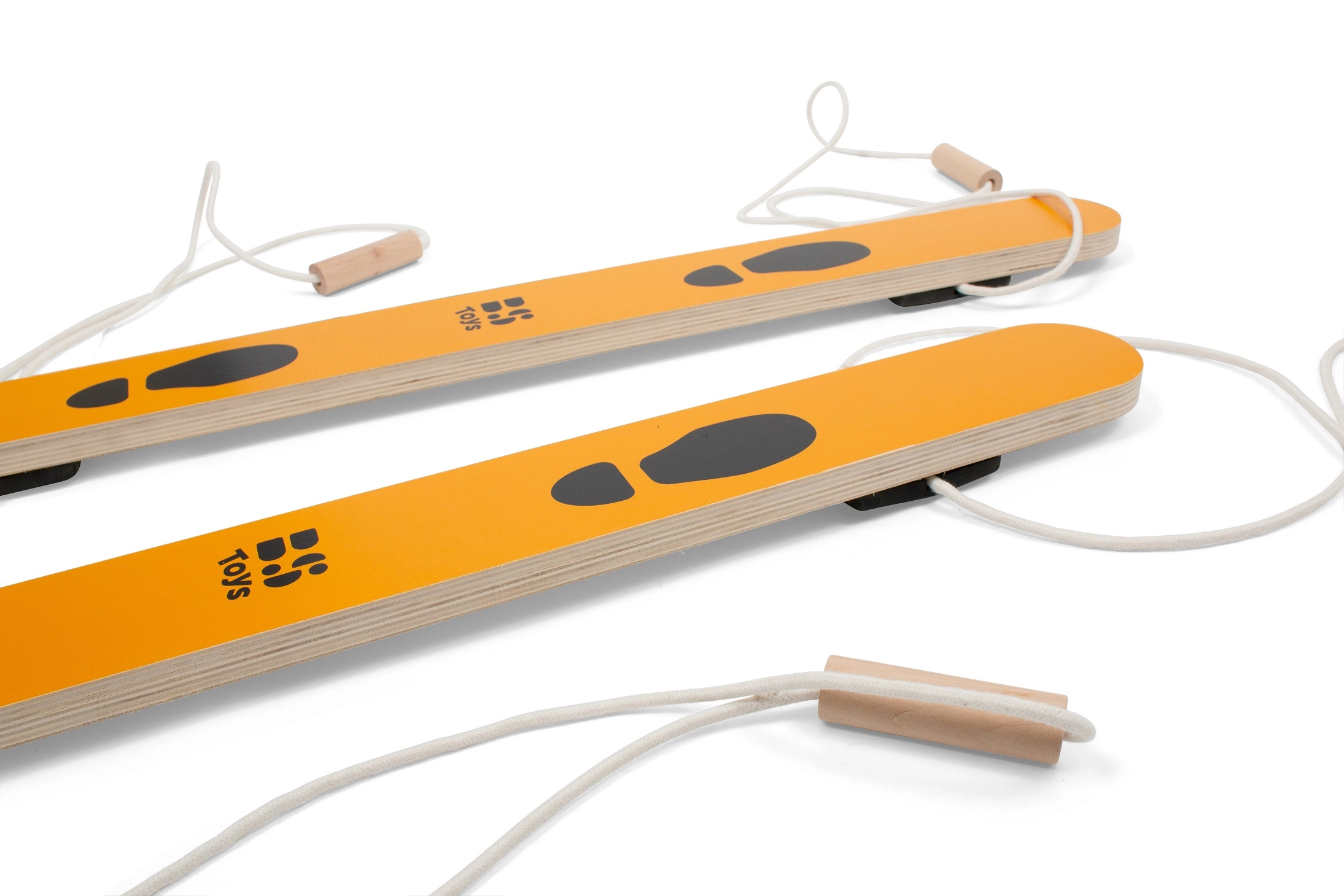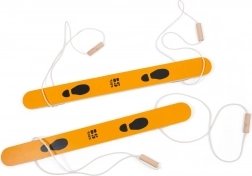 Lyže jsou vyrobeny z kvalitního dřeva a vybaveny pevným lanem s pohodlnými úchyty pro jistý krok. Díky rozměrům 90 × 8,5 × 2 cm jsou stabilní, snadno ovladatelné a vhodné pro začátečníky i pokročilé malé sportovce.