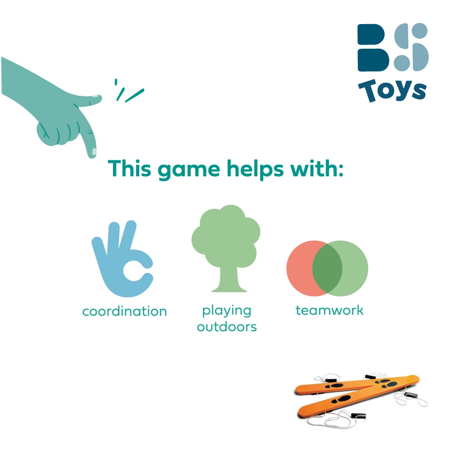 Dřevěné turistické lyže jsou skvělou pomůckou pro hry ve dvojici. Děti se učí sladit kroky, držet rytmus a komunikovat, aby společně zvládly „bláznivou chůzi“ bez pádu. Tato aktivní hra podporuje přirozený pohyb, rozvíjí motoriku a přináší spoustu zábavy do škol, družin, kroužků i na zahradu.