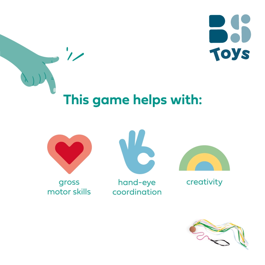 Skvěle se hodí pro domácí hraní, školní družiny i kroužky pohybové výchovy. Dlouhé stuhy zajišťují atraktivní vizuální efekt, zatímco korková koule poskytuje příjemnou, bezpečnou zátěž pro plynulé točení.