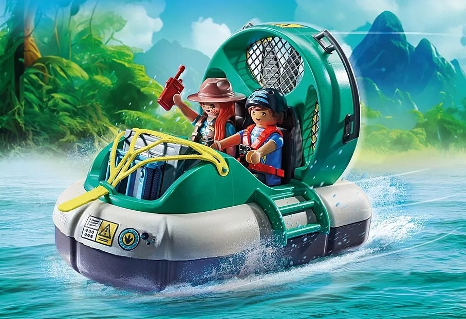 Vznášedlo pojme dvě figurky PLAYMOBIL a umožňuje realistické vodní průzkumy i rychlý přesun za dinosaury.