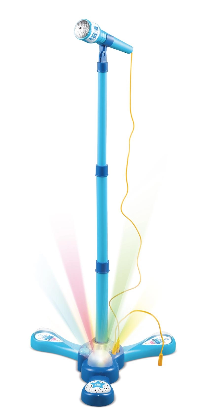 Svítící základna a mikrofon vytvářejí efektní světelnou show, která dodá zpěvu atmosféru pódia.