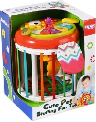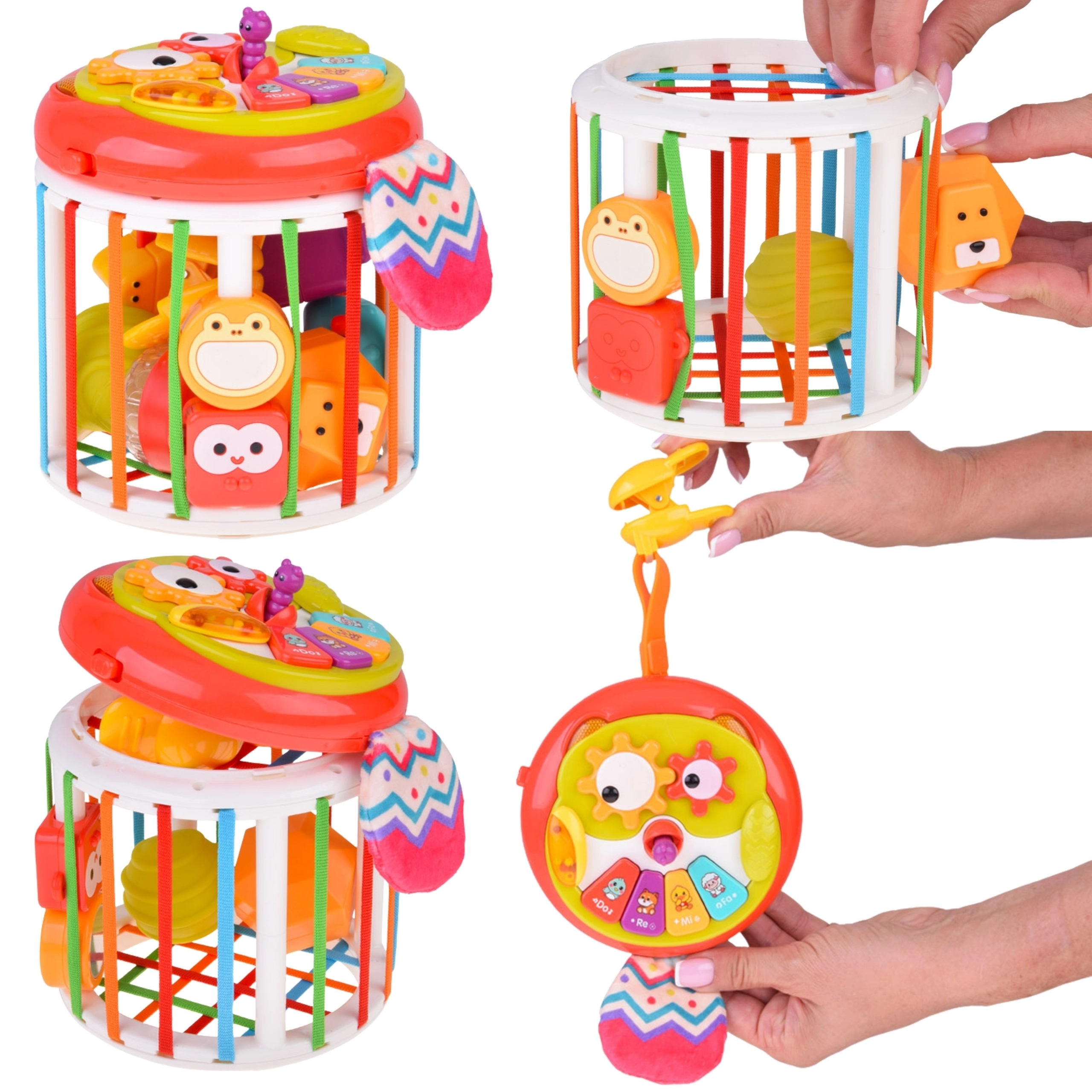 Interaktivní senzorická kostka WOOPIE s hudebním panelem a roztomilými zvířátky je ideální vzdělávací hračka pro nejmenší. Nabízí sorter tvarů, otáčející se ozubená kolečka, zrcátko a měkký vklad pro bezpečné zkoumání. Součástí je 7 různých kostiček s odlišnými tvary a strukturami, které podporují zrakové i hmatové vnímání a rozvoj jemné motoriky. Odolná, bezpečná konstrukce zaručuje dlouhou životnost a pohodlné používání.