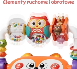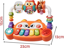 Interaktivní vzdělávací pianinko Woopie ve tvaru veselé lišky zaujme výraznými barvami, sympatickým obličejem a promyšlenými funkcemi. Děti mohou objevovat tóny na 5 klávesách, sledovat světelné efekty LED v rytmu hudby a objevovat otáčecí a pohyblivé prvky, které rozvíjejí jemnou motoriku a zvídavost.