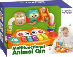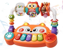 Hledáte hračku, která zabaví miminko a zároveň podpoří jeho vývoj už od prvních měsíců? Interaktivní piano od značky Woopie ve tvaru roztomilé lišky spojuje hudbu, světlo, barvy a pohyb. Nabízí 5 hudebních kláves (Do, Re, Mi, Fa, So), LED světelné efekty synchronizované se zvuky a otáčecí prvky s chrastítky pro stimulaci smyslů. Díky bezpečné konstrukci z netoxických materiálů a snadno stisknutelným tlačítkům je ideální pro malé ručky a podporuje smyslový, hudební i kognitivní rozvoj.