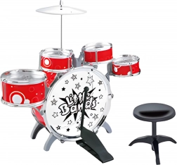 Souprava obsahuje celkem 7 prvků a je ideální pro domácí hraní i první „koncerty“. Rodiče ocení rychlé složení a odolné materiály, děti zase atraktivní vzhled s centrálním bubnem a činelem.