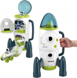 Raketa je vyrobena z odolného a bezpečného plastu ABS a má praktické madlo pro snadné přenášení. Otevírací kokpit a dveře zpřístupňují řídicí místnost i spodní hangár, takže si děti mohou vytvářet vlastní scénáře a rozvíjet kreativitu, koordinaci ruka–oko a motoriku. Hračka je vhodná do dětského pokoje, školky i na cesty.
