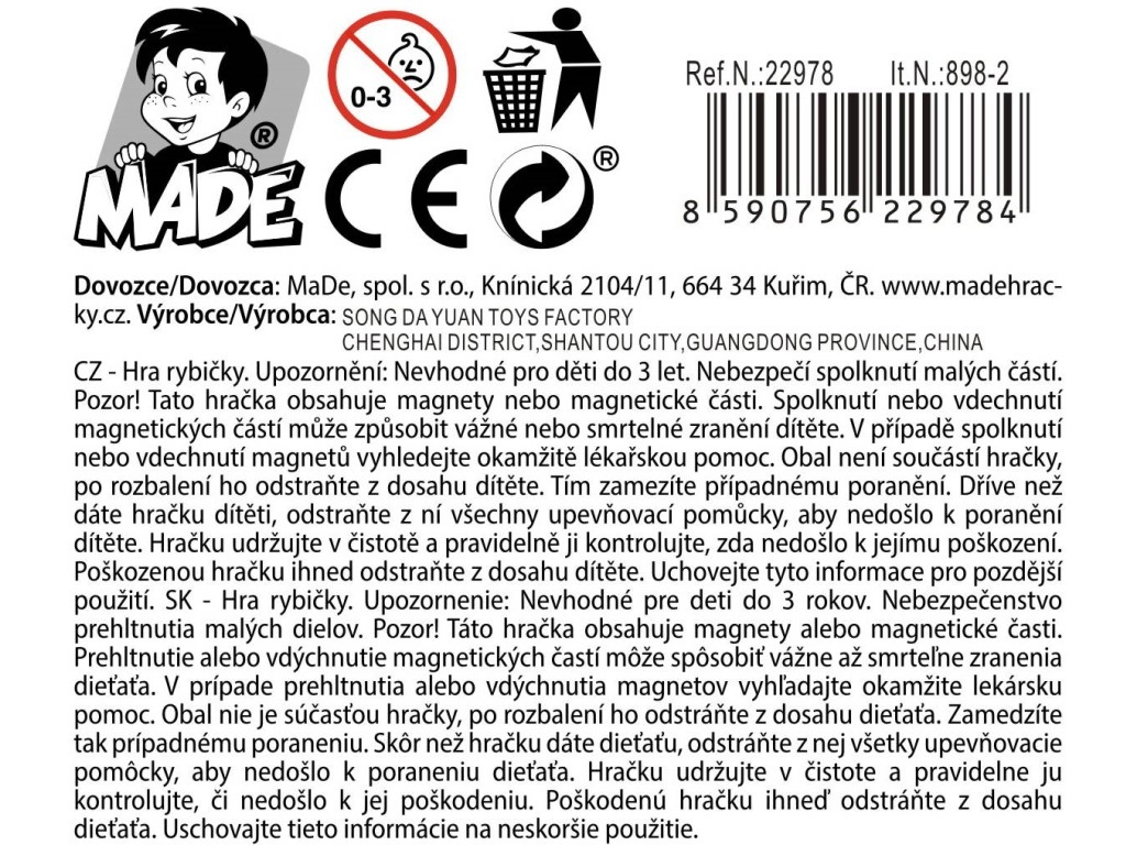Zábavná dětská hra s barevnými rybičkami bez potřeby baterií potěší malé i velké. Rozvíjí jemnou motoriku, koordinaci oko–ruka a přináší okamžitou zábavu díky jednoduchým pravidlům. Kvalitní plastové provedení a praktické balení v blistru zajišťují dlouhou životnost a snadné skladování.