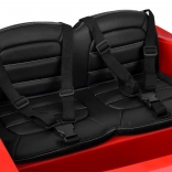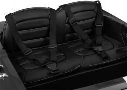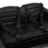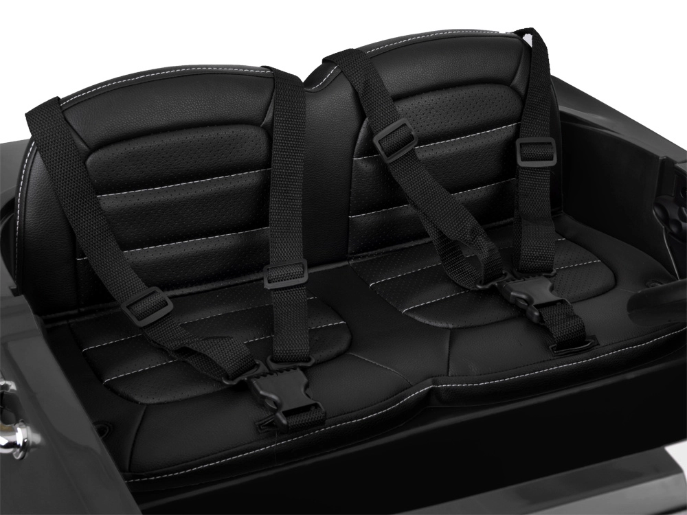 Prostorné dvoumístné sedadlo z eko kůže se dvěma samostatnými 3bodovými pásy zajišťuje pohodlí i bezpečí pro oba malé jezdce.