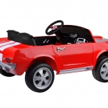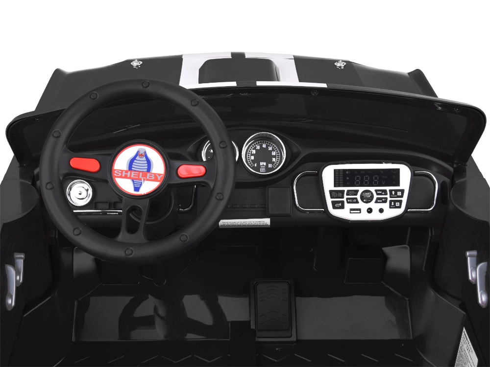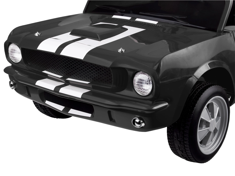 Legendární silueta muscle caru, dvojité bílé pruhy a emblém kobry dělají z tohoto autíčka hvězdu každého dvorku. Děti si užijí pohodlné sezení na čalouněné lavici z eko kůže, přehlednou palubní desku a volant posunutý doleva pro ještě realističtější řízení.