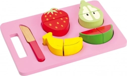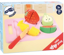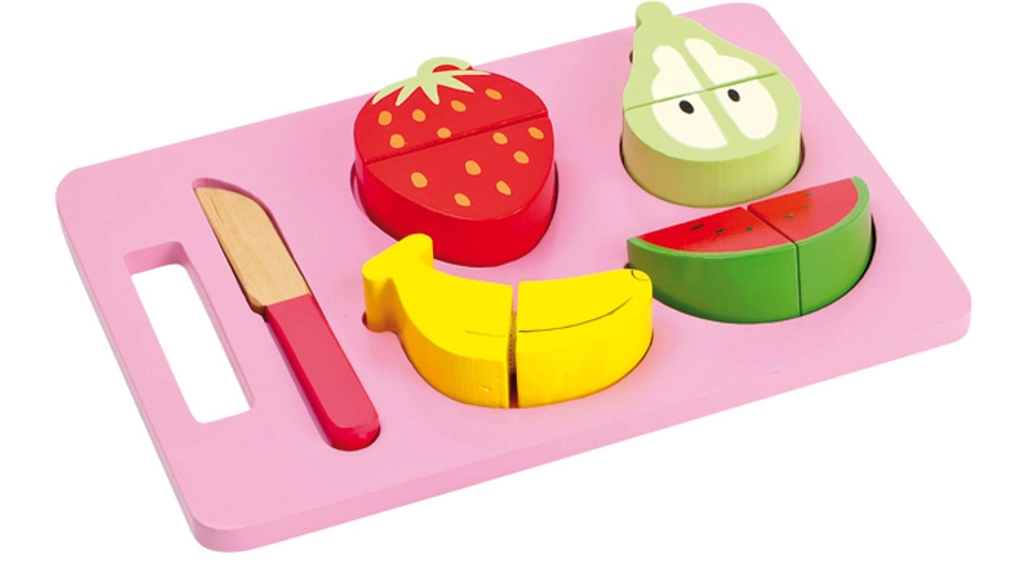 Souprava obsahuje prkénko, dřevěný nůž a čtyři druhy ovoce – banán, jahodu, hrušku a meloun. Kvalitní dřevěné provedení zajišťuje dlouhou životnost a bezpečnou hru bez ostrých hran.