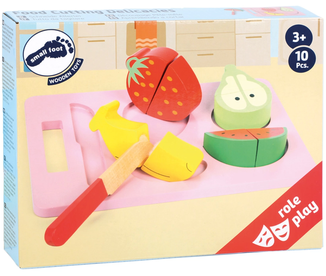 Připravte dětem zábavnou a zároveň vzdělávací hru s dřevěnou sadou Small Foot. Bezpečné krájení ovoce na prkénku s dřevěným nožem rozvíjí jemnou motoriku, koordinaci a fantazii. Díly ovoce drží pohromadě pomocí suchého zipu, takže je děti mohou znovu a znovu „krájet“ napůl. Vhodné pro děti od 3 let.