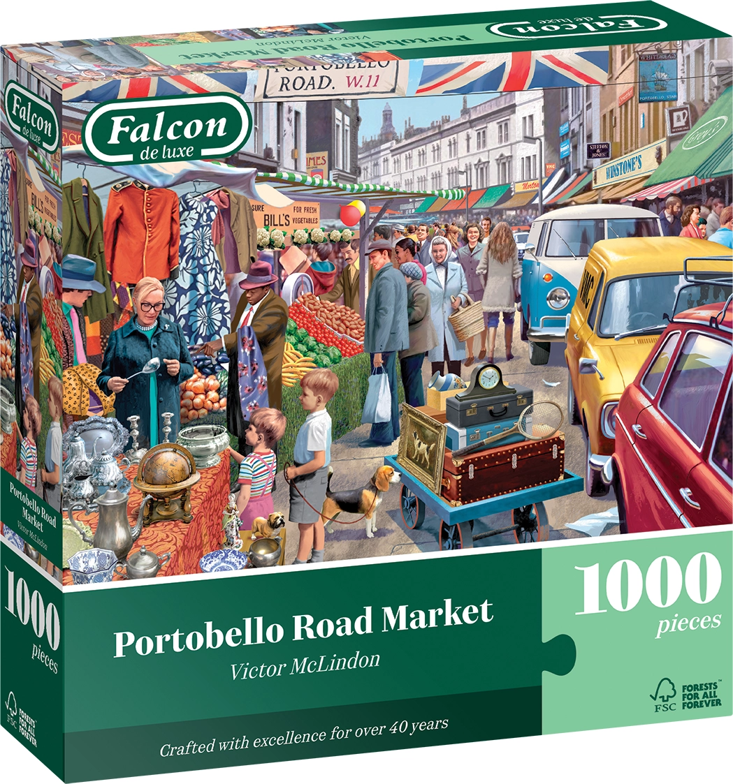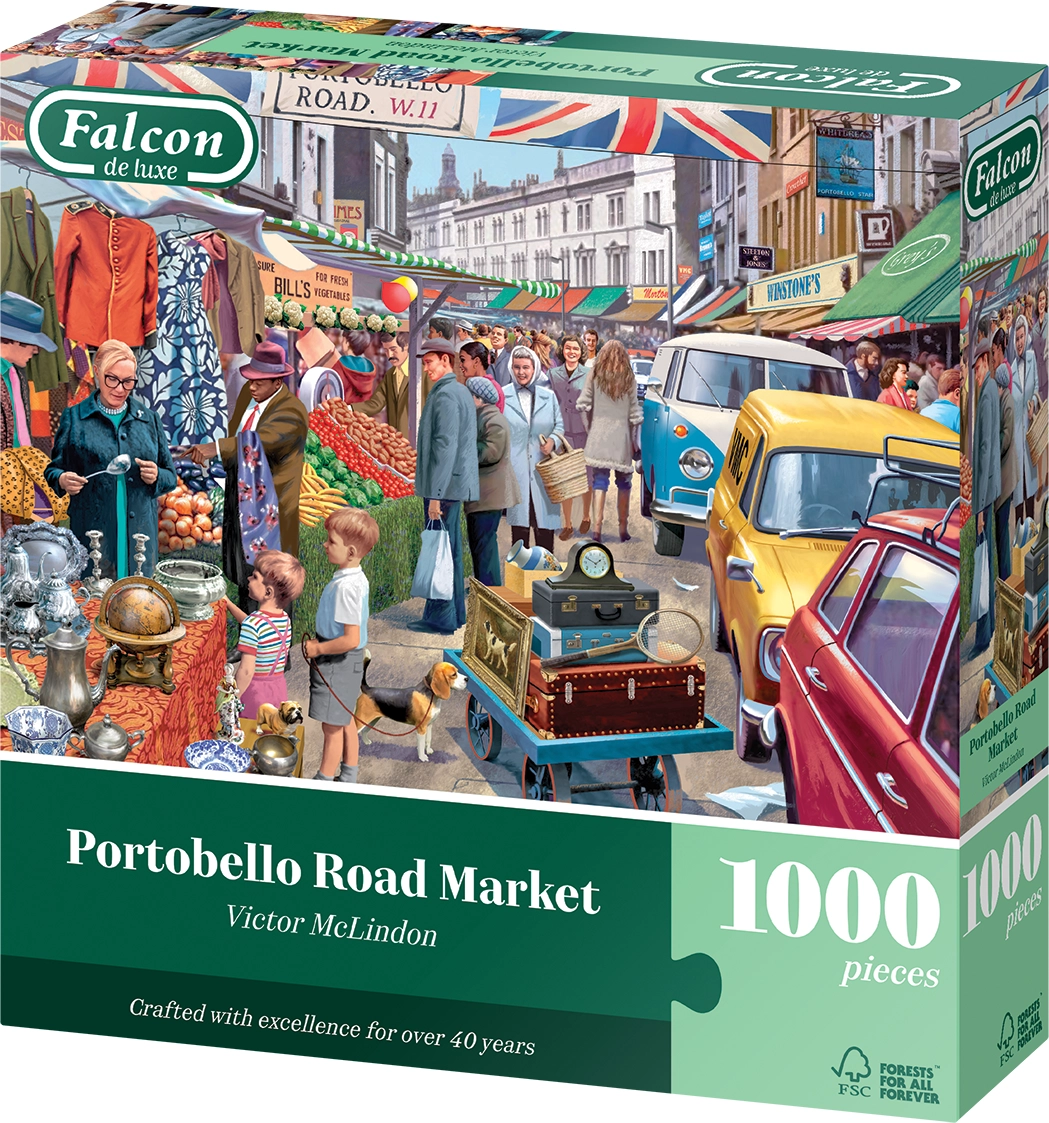 Objevte jedinečný humor a detailní ilustrace od Jana van Haasterena na motivu rušného trhu v Portobellu. Každý pohled odhalí nové vtipy, postavičky a typické „podpisy“ autora – od žraločí ploutve až po bláznivé situace v davu. Puzzle z kolekce FALCON / JUMBO vyniká precizním zpracováním a příjemným materiálem pro pohodlné skládání.