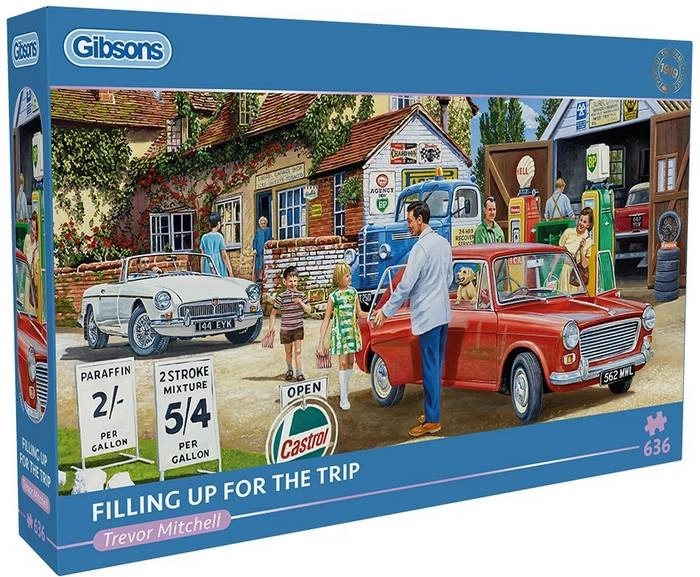 Panoramatické puzzle GIBSONS „Tankování před cestou“ je ideální volbou pro milovníky detailních ilustrací a klidného relaxu. Díky 636 pevným dílkům si vychutnáte plynulé skládání a na konci vás odmění působivá scéna s atmosférou cestování.