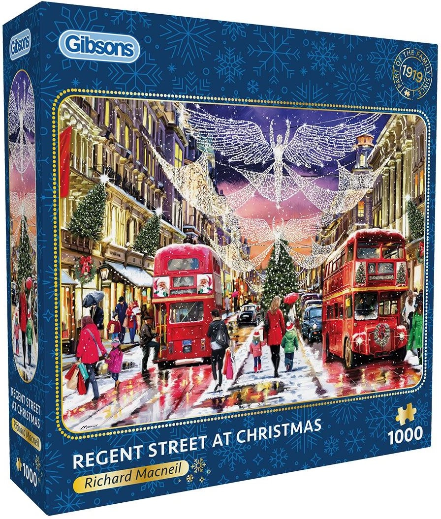 Objevte detailní zimní scenérii ikonické Regent Street s vánoční výzdobou. Puzzle GIBSONS je známé vysokou kvalitou zpracování, přesnými výřezy a sytými barvami, díky nimž je skládání radost od prvního do posledního dílku.