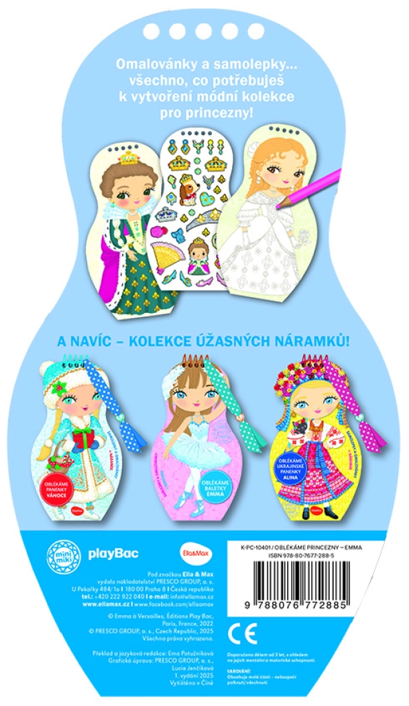 S touto knihou mohou děti vytvářet vlastní módní kreace pro princeznu Emmu, kombinovat šaty a doplňky a rozvíjet jemnou motoriku i kreativitu. Součástí je také stylový náramek, který potěší každou malou princeznu.