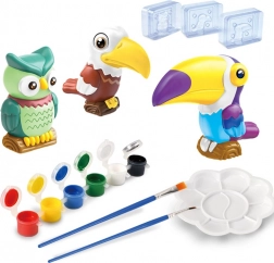 Objevte zábavnou kreativní sadu pro děti, se kterou si snadno vytvoříte a vyzdobíte vlastní 3D figurky exotických ptáků. Balení obsahuje formy, sádru, barvy, štětce i paletu – stačí přidat vodu a začít tvořit. Tato aktivita rozvíjí jemnou motoriku, kreativitu a trpělivost, a výsledkem jsou barevné sovy, tukan a další tropičtí ptáci jako krásná dekorace do pokoje.