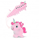 Růžový jednorožec jako 3D kartonový model je perfektní volbou pro malé tvůrce. Dílky stačí vyloupnout z archů a postupovat dle návodu na obalu. Hotová figurka potěší jako hračka i jako roztomilá dekorace dětského pokoje.