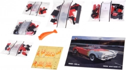 Červenobílý roadster s plameny, otevřeným kokpitem a detailní maskou přináší atmosféru klasických amerických vozů 50. let.