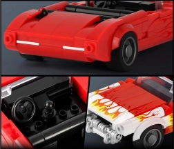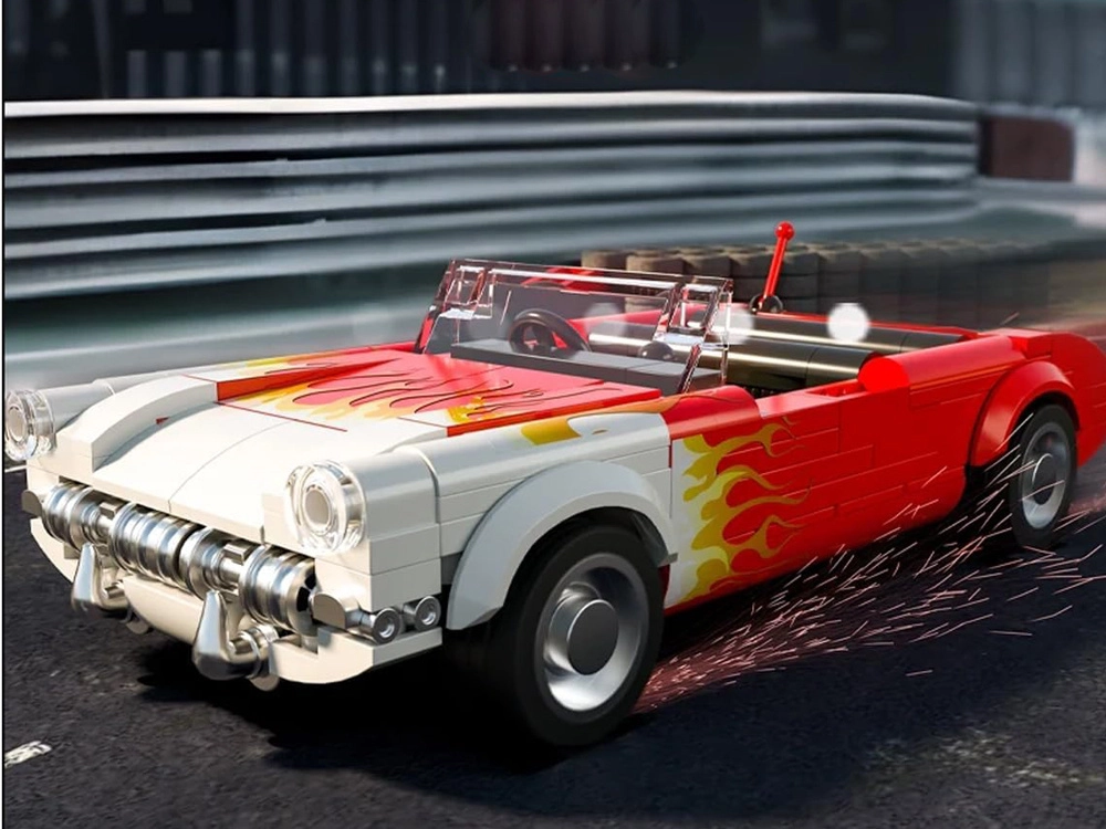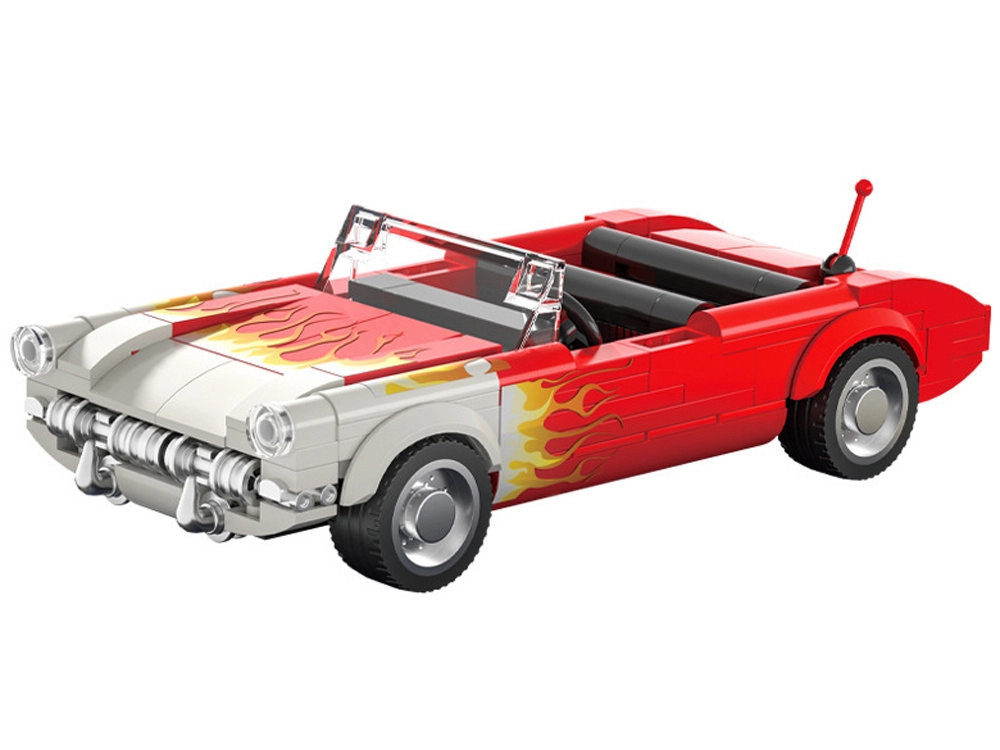 Díky realistickým prvkům, jako jsou plamenové samolepky, plné ráfky, specifický přední nárazník a dekorativní „chrom“, získáte model s výrazným charakterem. Součástí je také obrázkový návod a separator kostek pro pohodlné sestavování.