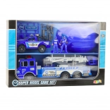 Tato bohatě vybavená policejní sada promění dětský pokoj v centrum záchranných operací. Velký policejní vůz s pohyblivým žebříkem nabízí spoustu herních možností, terénní auto je připravené na dynamické honičky a figurky policistů usnadní sehrání realistických scén. Ochranná helma dětem dodá pocit, že jsou součástí skutečné akce.