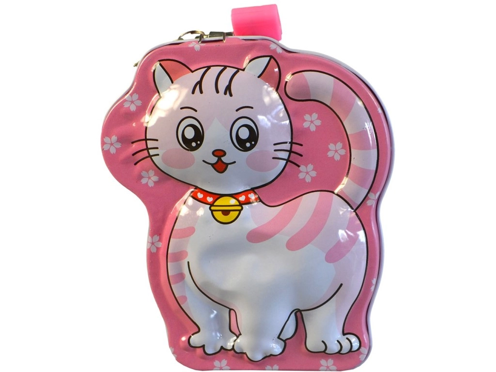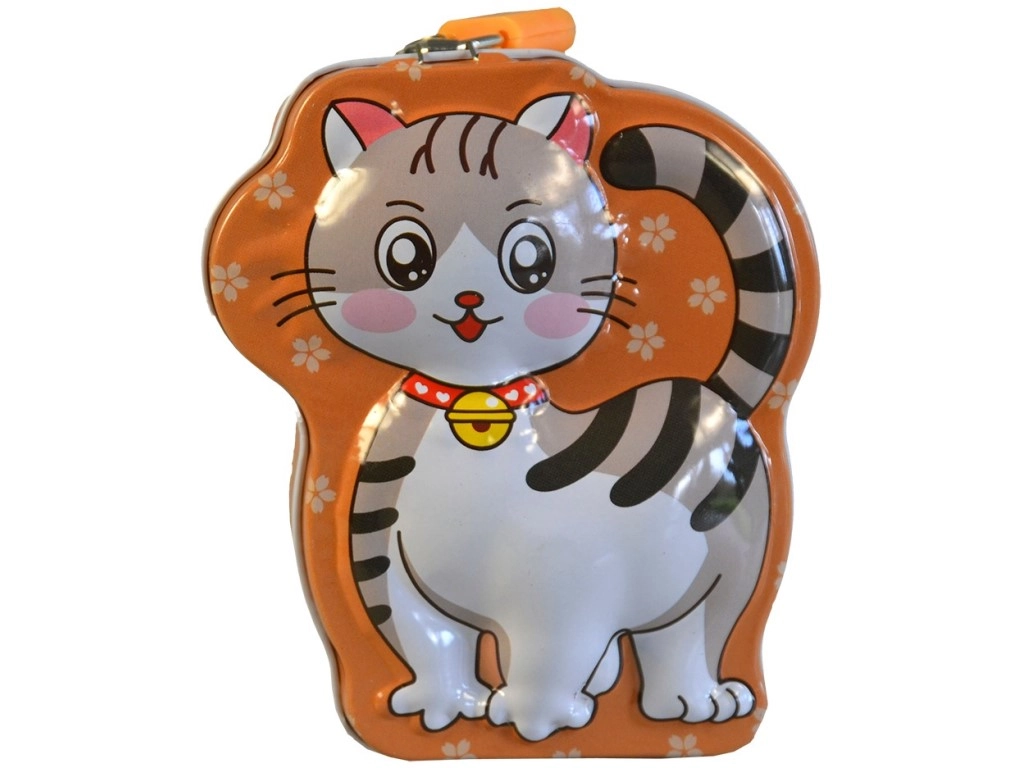 Roztomilá kovová pokladnička ve tvaru kočky potěší děti i milovníky zvířecích motivů. Díky kompaktním rozměrům se vejde na každý stůl či poličku a snadno se přenáší. Odolné kovové provedení, bezpečné uložení mincí a hravý design dělají z této kočičí pokladničky ideální dárek pro děti od 3 let.