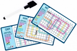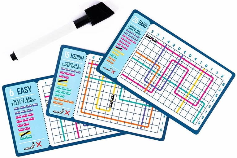 Díky mazatelnému peru a odolným kartičkám můžete úlohy řešit znovu a znovu, hledat nová řešení a porovnávat výsledky s rodinou či přáteli. Ideální na cestování, čekání na vlak nebo pauzu v práci.