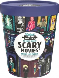 Užijte si napínavou zábavu s originálními puzzle z kolekce RIDLEY’S GAMES. Stylový kbelíkový obal, 1000 dílků a motiv 50 kultovních hororových filmů zaručí skvělý zážitek pro fanoušky žánru. Součástí je předloha a po složení vznikne obraz o rozměru cca 55 × 70 cm. Texty na puzzle jsou v angličtině.